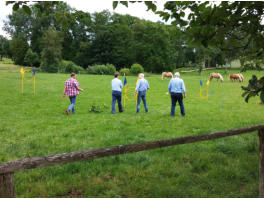 Ziel-Frisbee-Werfen, Boulespiel, Axtwerfen, Line-Dance und das beliebte Koppelgolf. Oder